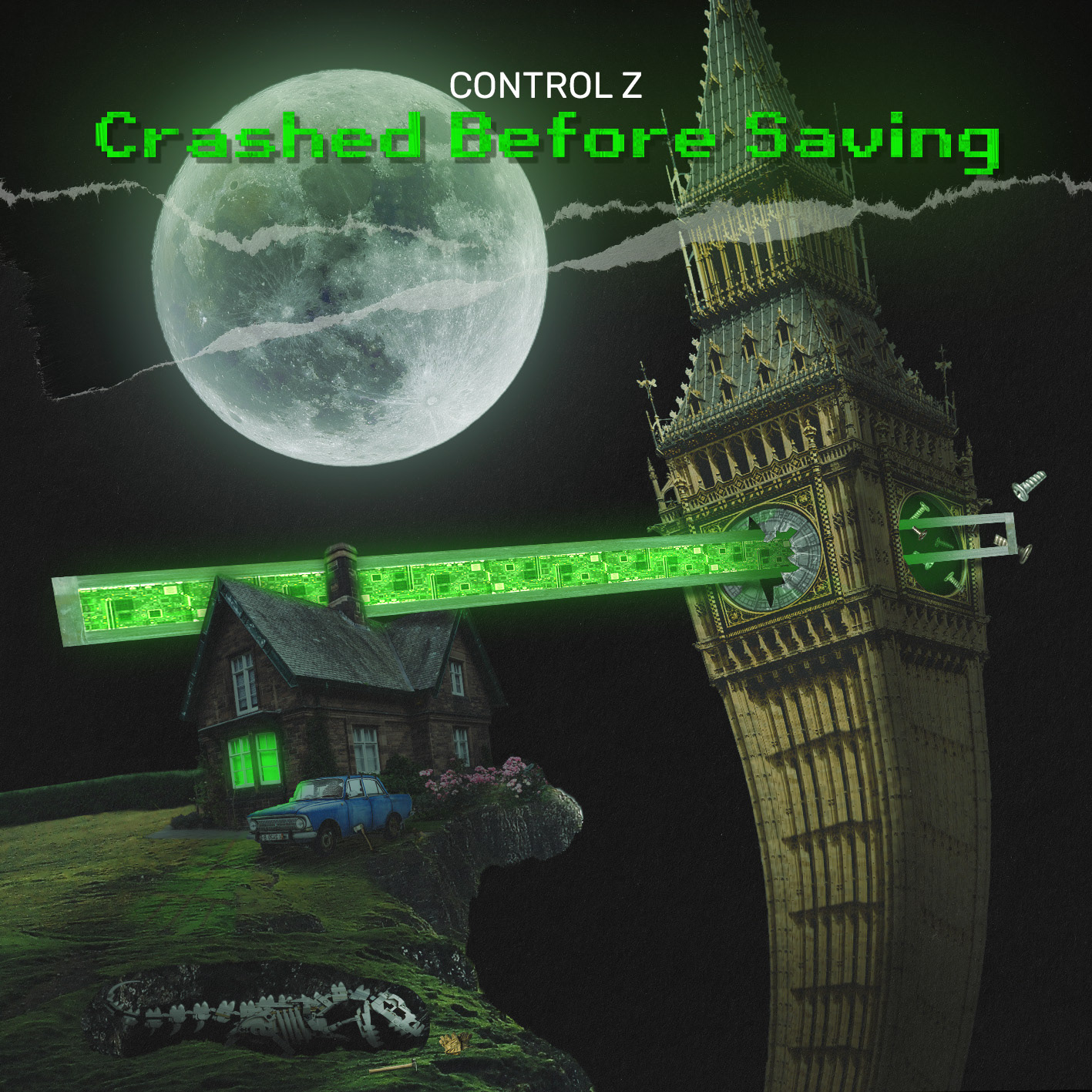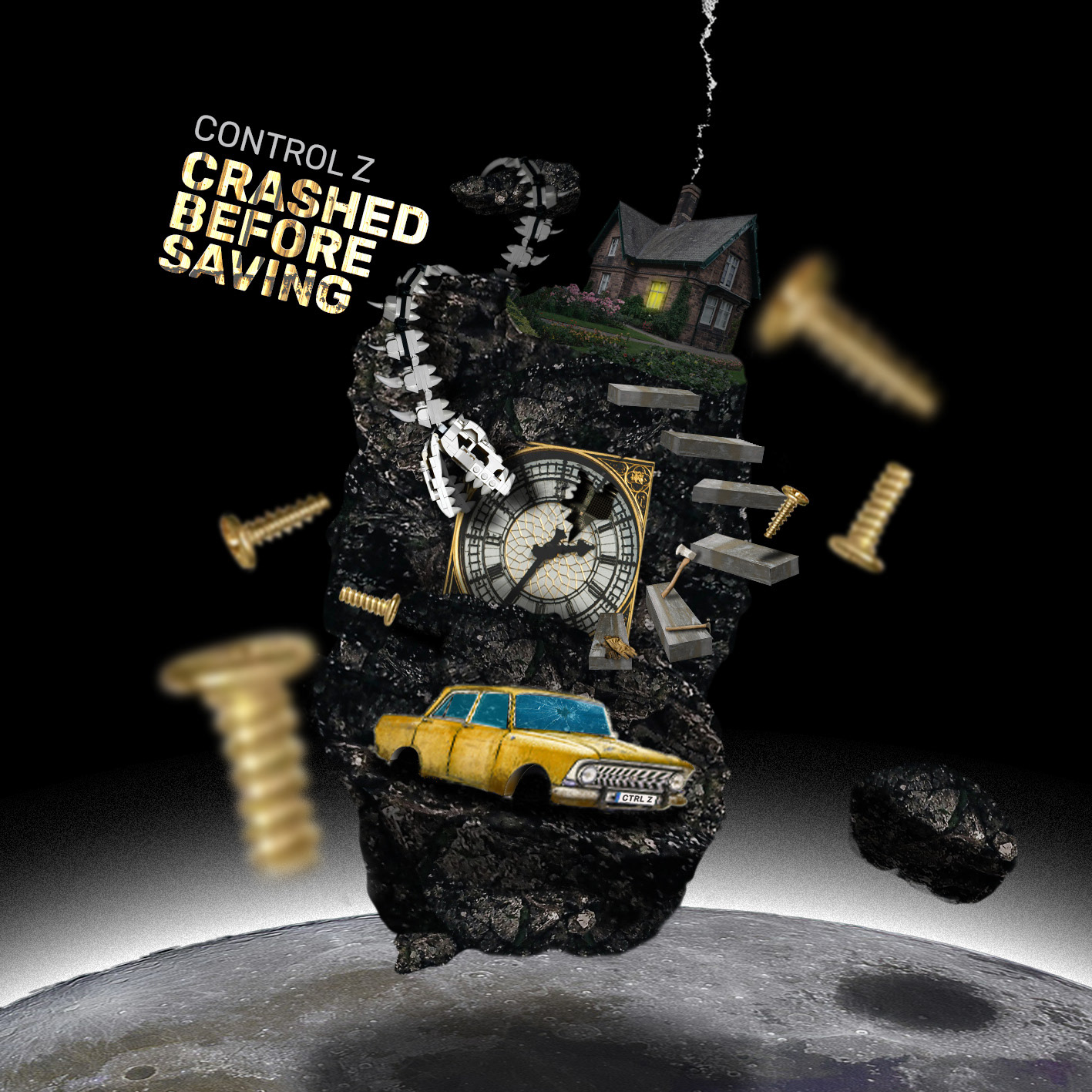 Design the album artwork for a fictional music artist called "Control Z". The album is titled Crashed Before Saving. Your design must use all of the provided images below, in one way or another. Be as creative as you like!